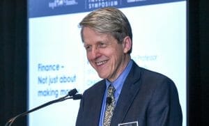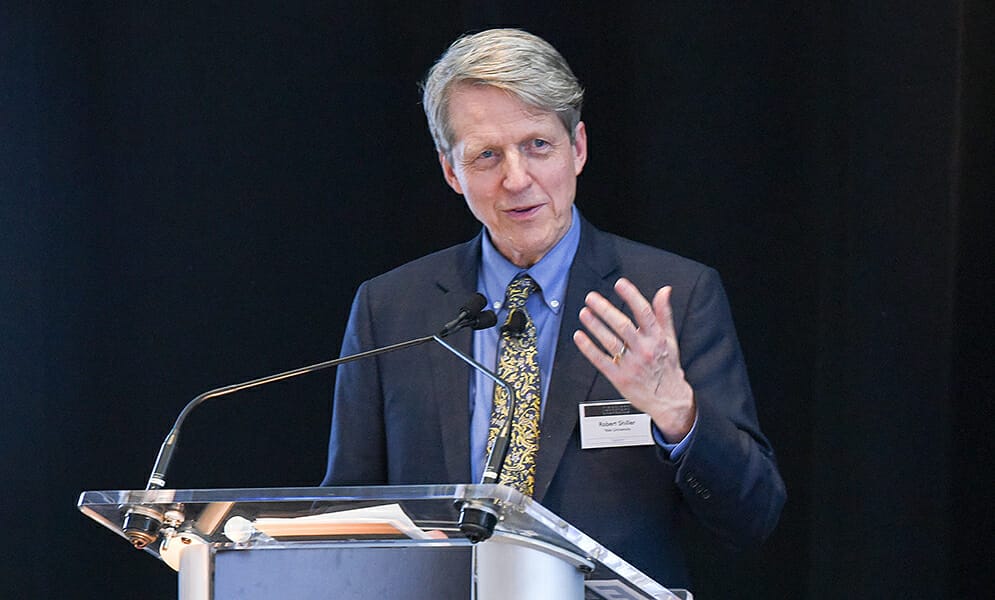 Photos of Professor Robert Shiller at the Fiduciary Investors Symposium, Yale School of Management
