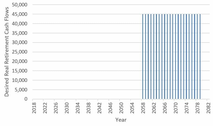 Chart 1: Potential desired retirement cash flows for a 25-year old Australian