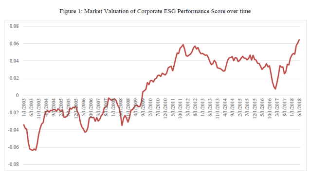 My paper “Public sentiment and the price of corporate sustainability” analyses data for the years 2009-18 provided by MSCI and TruValue Labs, the pioneer in artificial intelligence-driven ESG data. I use MSCI ratings for ESG performance due to their industry-wide prevalence and employ TruValue Labs’ data to find sentiment in semantic big data for ESG topics.