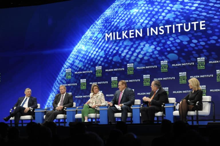 Following comments from the IMF’s Christine Lagarde on the global economy a turbocharged session at the Milken Institute Global Conference saw chiefs of five large financial services firms explore their concerns about the global economy.