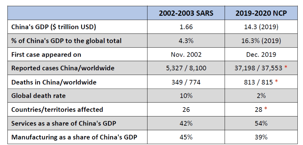 China is also more integrated into the global economy than in 2003 when SARS broke out. Back then, China’s GDP was only 4.3 per cent of the global economy, while by 2019 that number had increased to 16.3 per cent. During the SARS period, lockdown measures were not taken by any city in China (including the epicenter in Beijing). This time, well over half of the country is locked down for weeks. Businesses started to slowly reopen on February 10, but the government is advising further postponement for a week or more and most schools will not open before March.