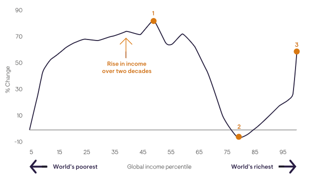 Source: Branko Milanovic, Global Inequality: A New Approach for the Age of Globalization, BBC. Please note that this chart has been redrawn by Ninety One.