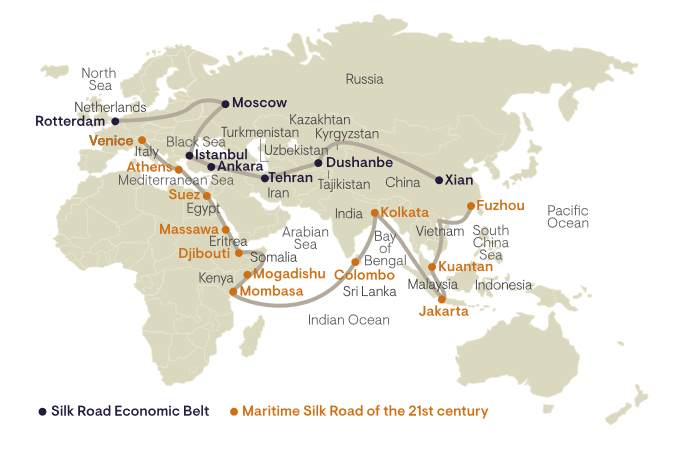 Figure 2: Trade routes for the Belt and Road initiative