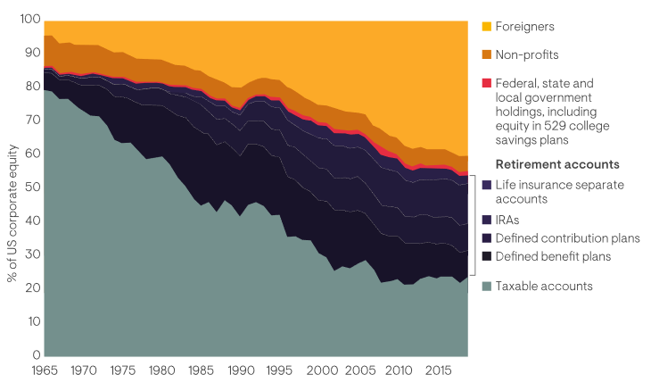 Figure 3: Ownership of US corporate stock, 1965-2019
