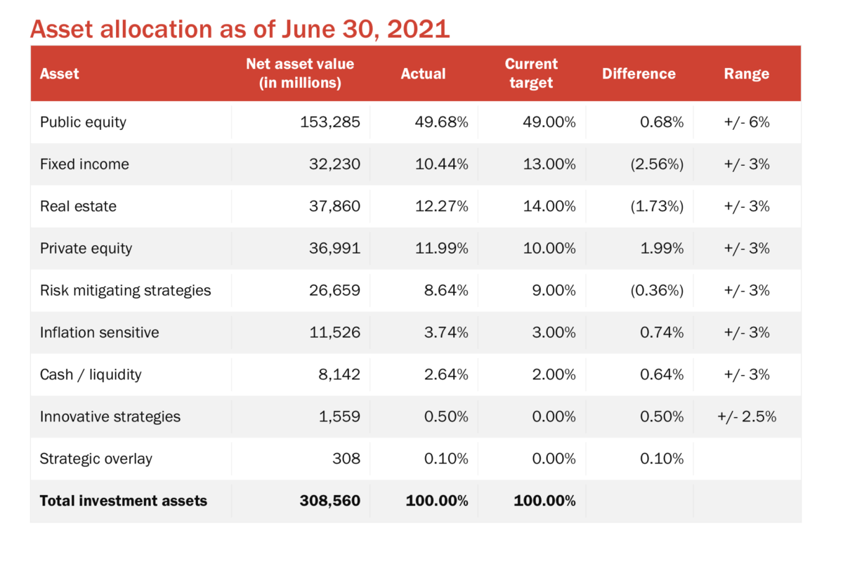 CalSTRS currently has a 12 per cent allocation to private equity, against a target of 10 per cent, and the asset class was a stellar performer with 51.9 per cent for the year.