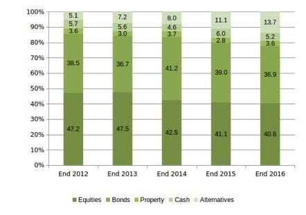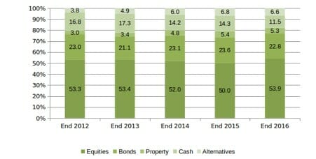 Irish DB scheme asset allocation 2012-16