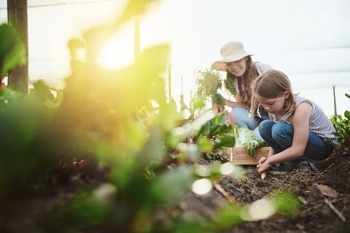 Full length shot of a young mother and her little daughter working on the family farm